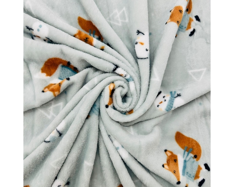 La tela de coralina estampada con adorables zorros y muñecos de nieve es perfecta para crear proyectos acogedores y divertidos. Su suave textura brinda calidez, ideal para mantas, pijamas o decoraciones invernales.