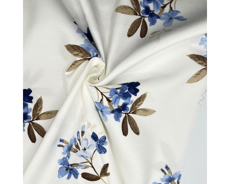 Tela antimanchas con estampado de flores azules “Ramito Azul”, ancho 160 cm. Elegante, resistente y perfecta para manteles, mesas de diario o uso en exteriores.