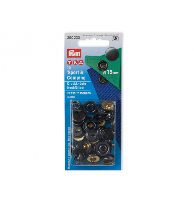 El set de botones a presión Sport & Camping de 15 mm de Prym es una solución resistente y duradera para prendas y accesorios sometidos a un uso intensivo. Especialmente diseñados para tejidos fuertes, estos broches ofrecen una fijación segura ideal para ropa técnica, equipamiento outdoor y proyectos exigentes.