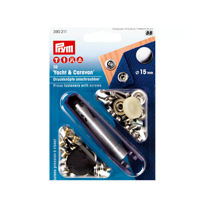 Los botones a presión Prym “Yacht & Caravan” son cierres de alta resistencia diseñados para aplicaciones exigentes en tejidos gruesos y materiales técnicos. Están especialmente indicados para su uso en náutica, caravanas, toldos, lonas y tapicería, donde se requiere una fijación segura y duradera.