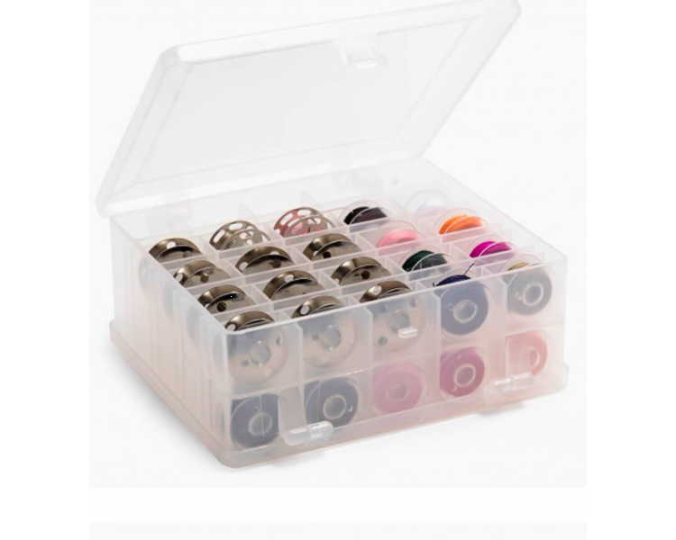 La caja para canillas de Milward es un accesorio práctico y eficiente para almacenar y organizar hasta 50 canillas de hilo de coser.