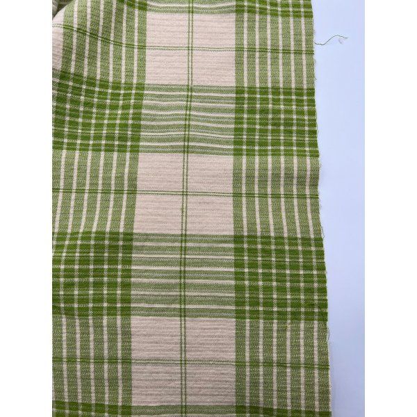 Esta espectacular gabardina forrada en un ligero pelo en forma canalé en color crudo y textura muy suave. Los elegantes cuadros en verde combinado con un tono crudo hacen que las prendas que vayas a coser sean muy combinable.