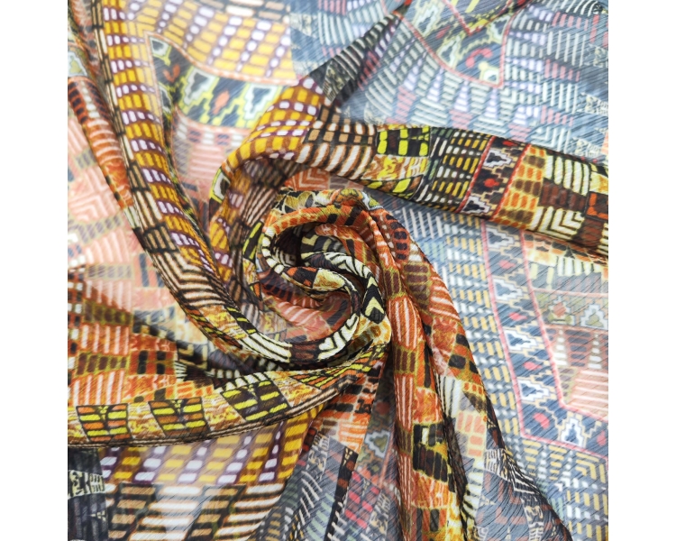 Ya sea que desees confeccionar una blusa bohemia, un vestido fluido o un pañuelo chic, esta gasa es la elección perfecta. Atrévete a explorar tu creatividad y añade un toque exótico a tus creaciones con nuestra tela de gasa estampada étnica en tonos marrones.