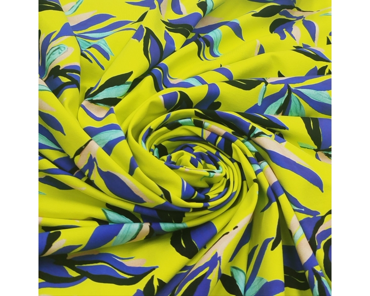 Nuestra tela de lycra estampada con hojas abstractas es perfecta para crear prendas modernas, deportivas o de moda. Con su textura suave y elasticidad excepcional.