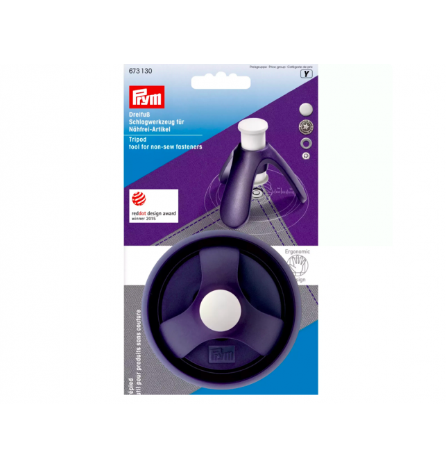 La herramienta trípode para accesorios sin costura de Prym es una solución práctica y precisa para colocar botones de presión, remaches, ojales y otros cierres sin necesidad de coser. Su innovador diseño de tres apoyos permite aplicar presión uniforme, facilitando la instalación de accesorios de mercería con resultados profesionales.