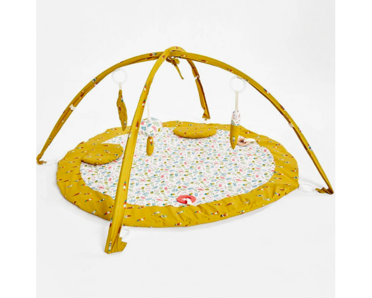 La manta tiene forma circular y se dan instrucciones para acolcharla, con lo que conseguirás una estructura más blandita y confortable. Además, las instrucciones se detallan para colgar peluches y adornos sobre la varilla que cruza la manta. Conseguirás una mayor diversión de tu pequeño.