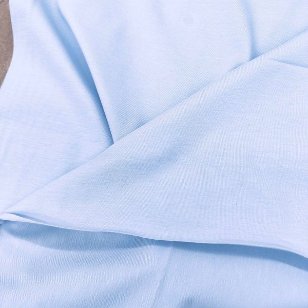 Tela de punto de algodón liso color azul. Ideal para confeccionar prendas cómodas y elegantes, este tejido es perfecto para camisetas, vestidos y suéteres. Su textura ligera y transpirable garantiza comodidad durante todo el día, mientras que su amplia gama de colores permite crear looks únicos y personalizados.