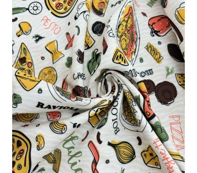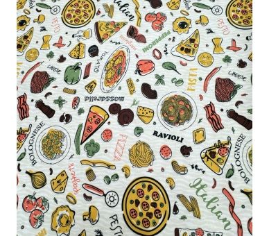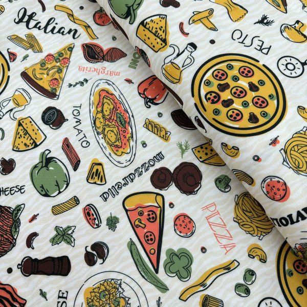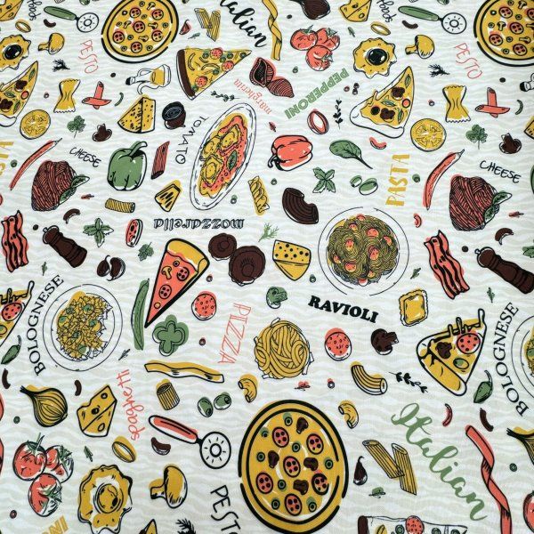 Fabricada con materiales duraderos, esta tela no solo es fácil de limpiar, sino que también resalta el espíritu festivo de una auténtica experiencia gastronómica italiana.