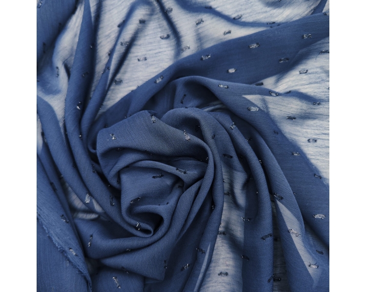¡Luce elegante y sofisticada con nuestra hermosa tela de gasa plumeti en color azul marino! Con 150 cm de ancho, esta tela ligera y fluida es perfecta para confeccionar prendas y accesorios que te harán destacar.