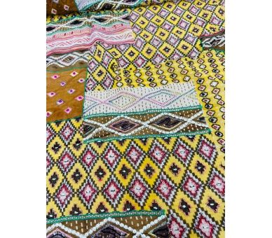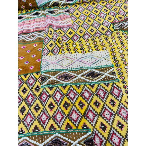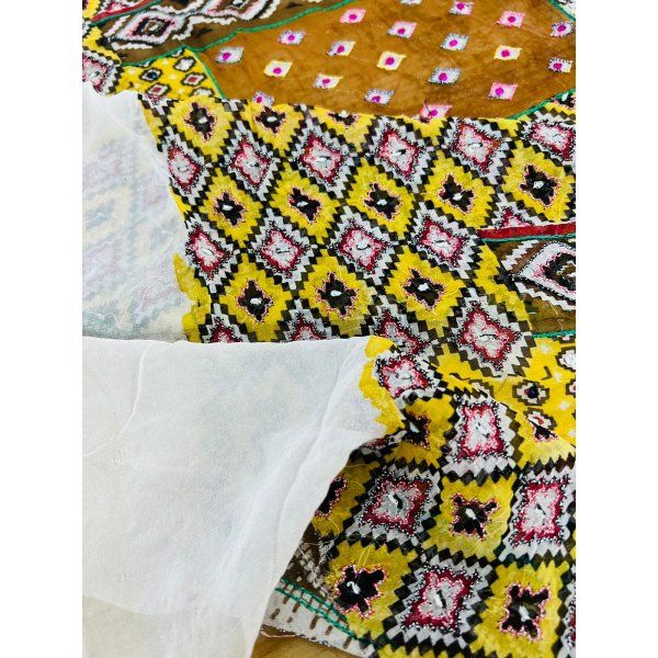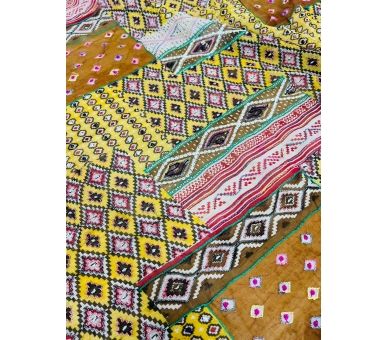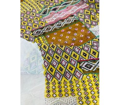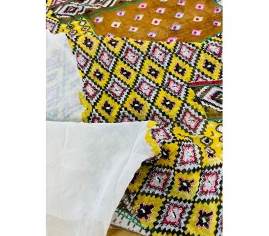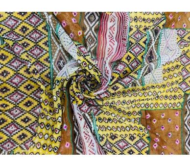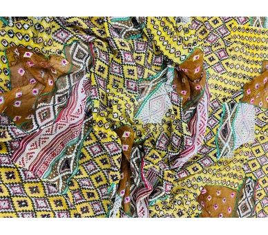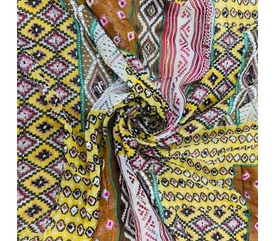 Tela de gasa de seda 100% natural en estampado, bordada y con unas lentejuelas sutiles y discretas. Tela de seda translúcida, vaporosa, de textura suave y muy agradable.