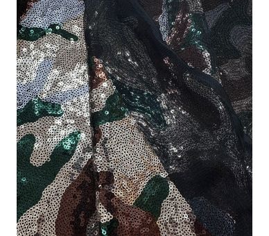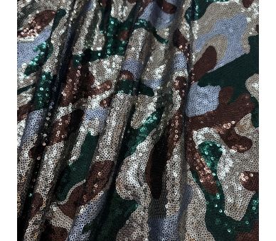 ¡Descubre nuestra exclusiva tela de lentejuelas con estampado de camuflaje! Perfecta para darle un toque único y brillante a tus proyectos de moda. Ideal para vestidos, accesorios o decoraciones que deseen destacar.