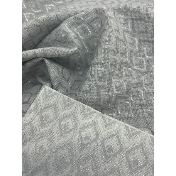 Tela para mantelería brillante gracias al hilo lurex de color plateado que lleva incorporado en el tejido. Esta tela es perfecta para utilizar en ocasiones especiales.