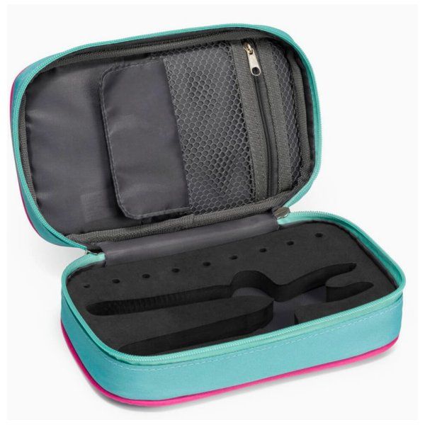 Se presenta fabricado en textil de color menta, con el borde en fucsia. El interior es de espuma con la forma adecuada para adaptar la herramienta. Esto la protegerá durante cualquier transporte. El cierre es de cremallera para asegurarla en el interior.