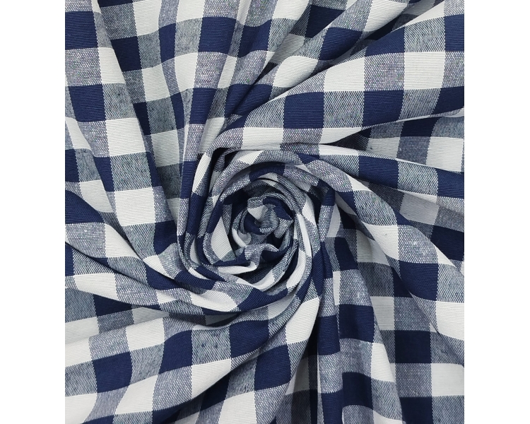¡Tela de loneta estampada Vichy en color azul marino! Con cuadros de 15 mm, perfecta para confección de cortinas, cojines, bolsos y más. Calidad duradera y diseño clásico que nunca pasa de moda.